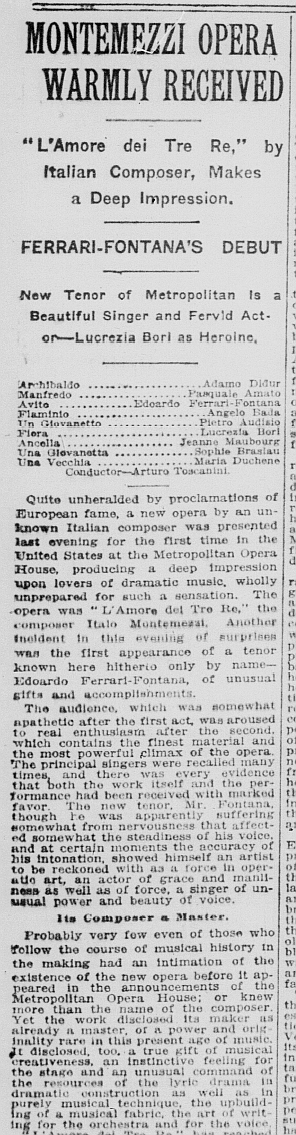 *アメリカ初演。アヴィート役のフェラーリ・フォンタナは、