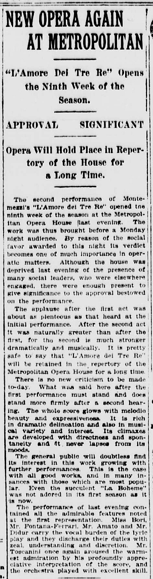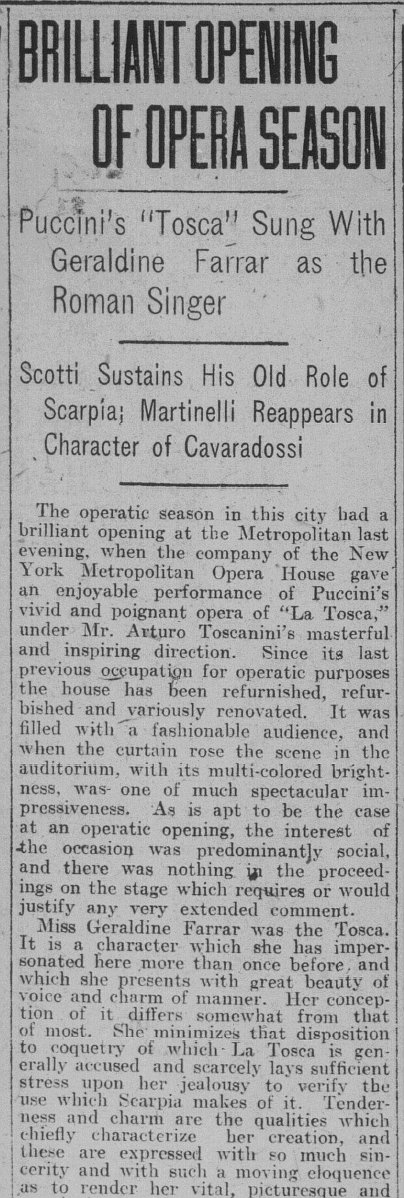 *トスカニーニがメトに就任した1908年以来の新演出。