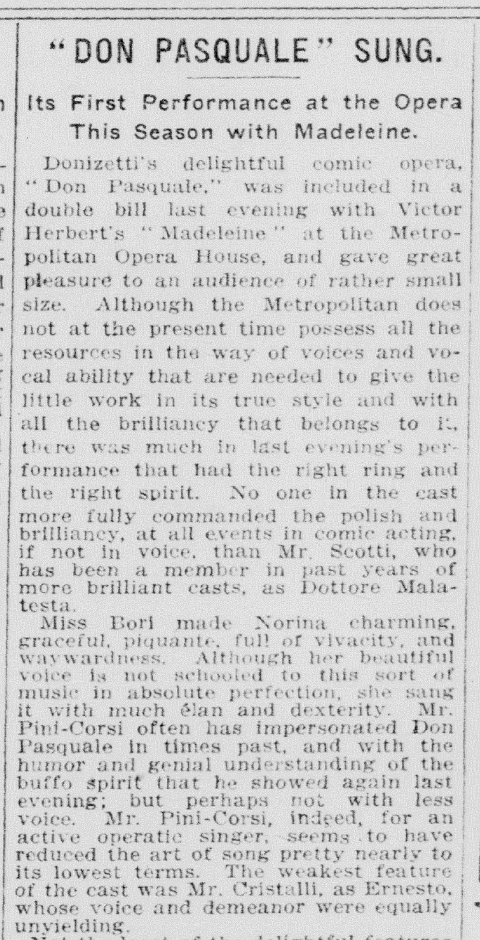 *1888年のメトロポリタン初演から26年ぶりの新演出。