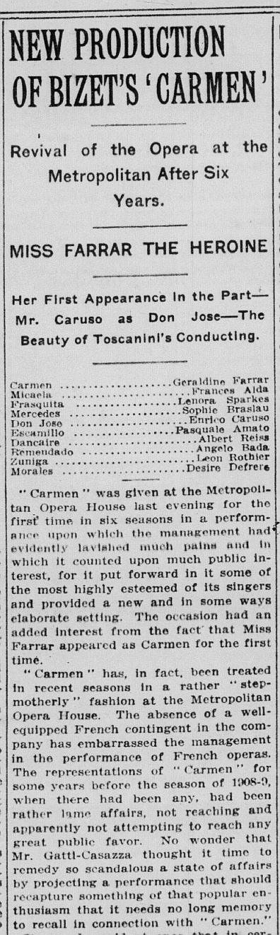 カルーソーは前回もドン・ホセ、ファラーはミカエラ役だった。